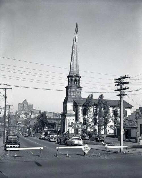 The congregation split into two churches, "Broad Street Methodist Church," and "Trinity Methodist Church," each meeting in separate buildings 10 blocks from each other. New Trinity Church was erected in 1860 at 2000 W Broad Street. It was designed by noted Richmond architect Albert West, who was also a leading Methodist. This building housed Trinity Methodist Church until 1945 when the congregation moved to the current site on Forest Avenue in Henrico County. Broad Street moved to the western Henrico County in 1960 and became "River Road Methodist."
